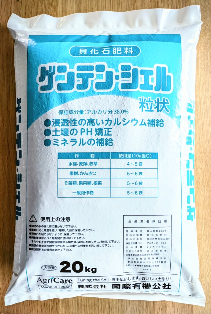 貝化石肥料「ゲンテン・シェル」(炭酸カルシウム/ケイ酸)